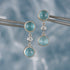 14K white gold earrings with round apatite cabochons and two round lab-created diamonds.