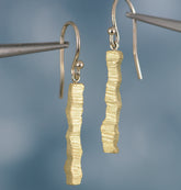 18K yellow gold bark stick earrings with 14k white gold ear wires.