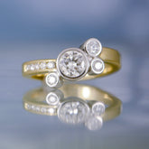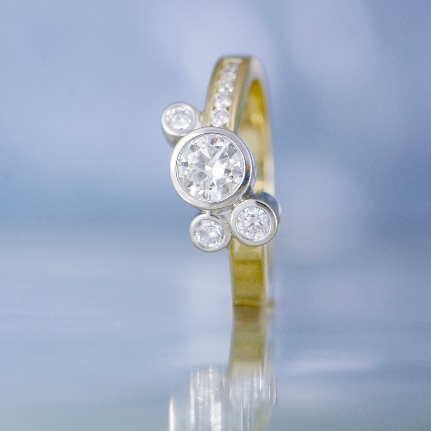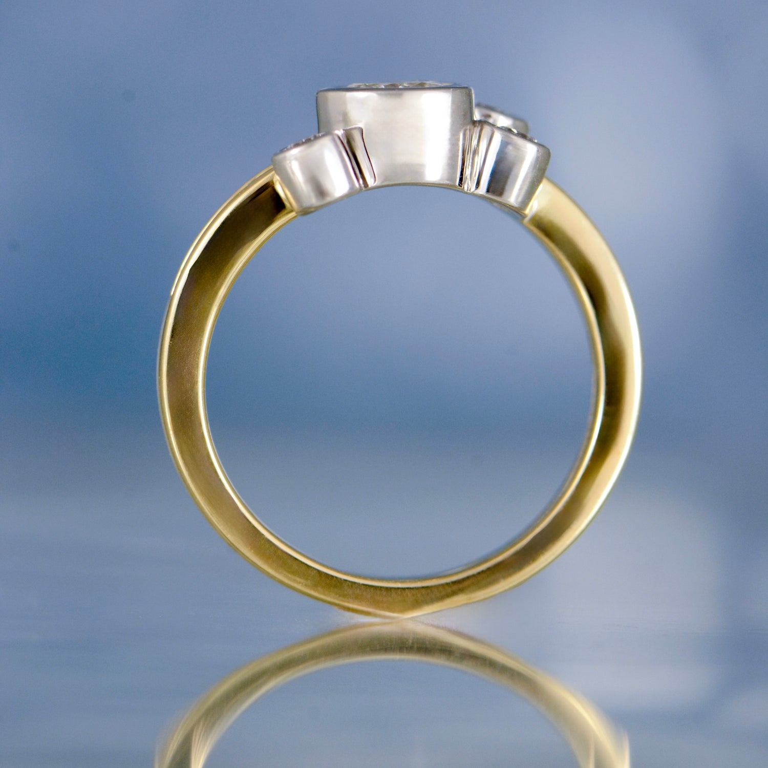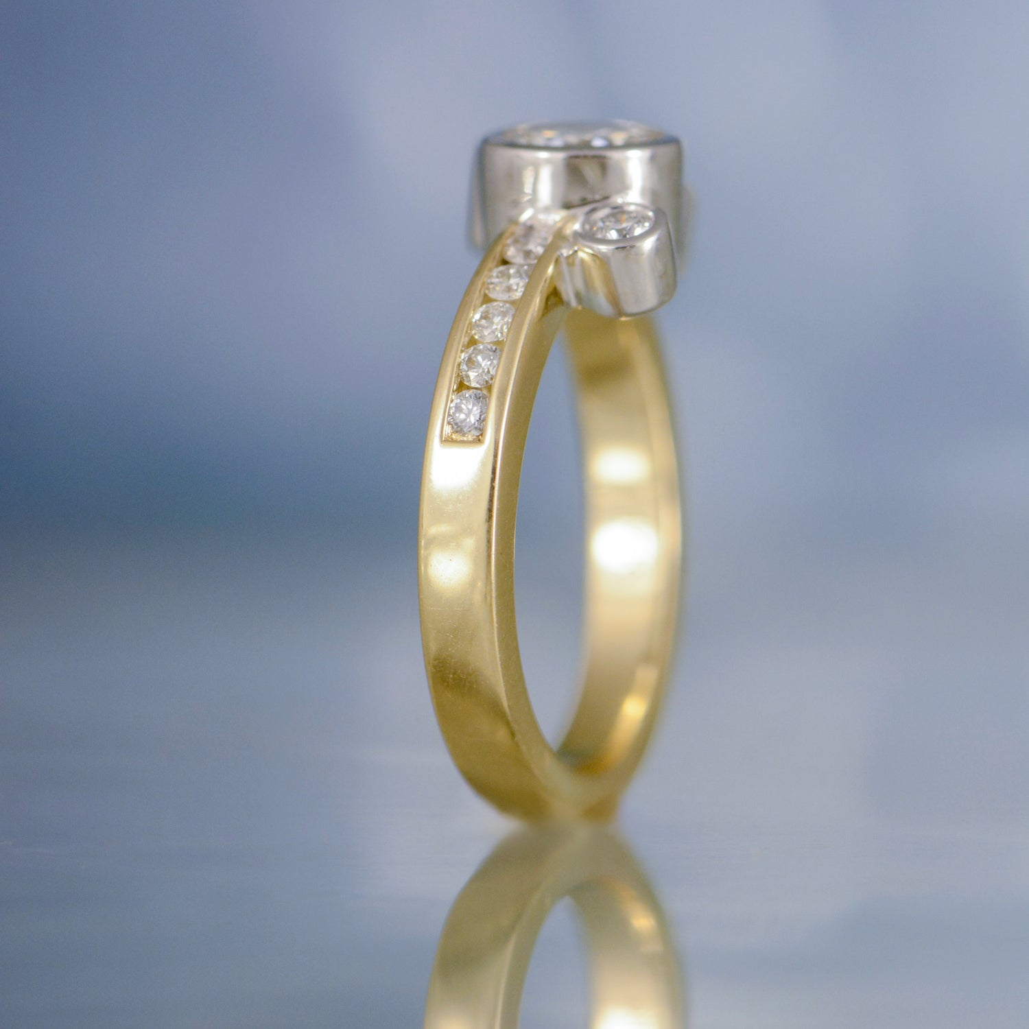 14K yellow and white gold ring with bezel-set round white diamonds (.51ct center diamond). Finger size 6-1/2.
