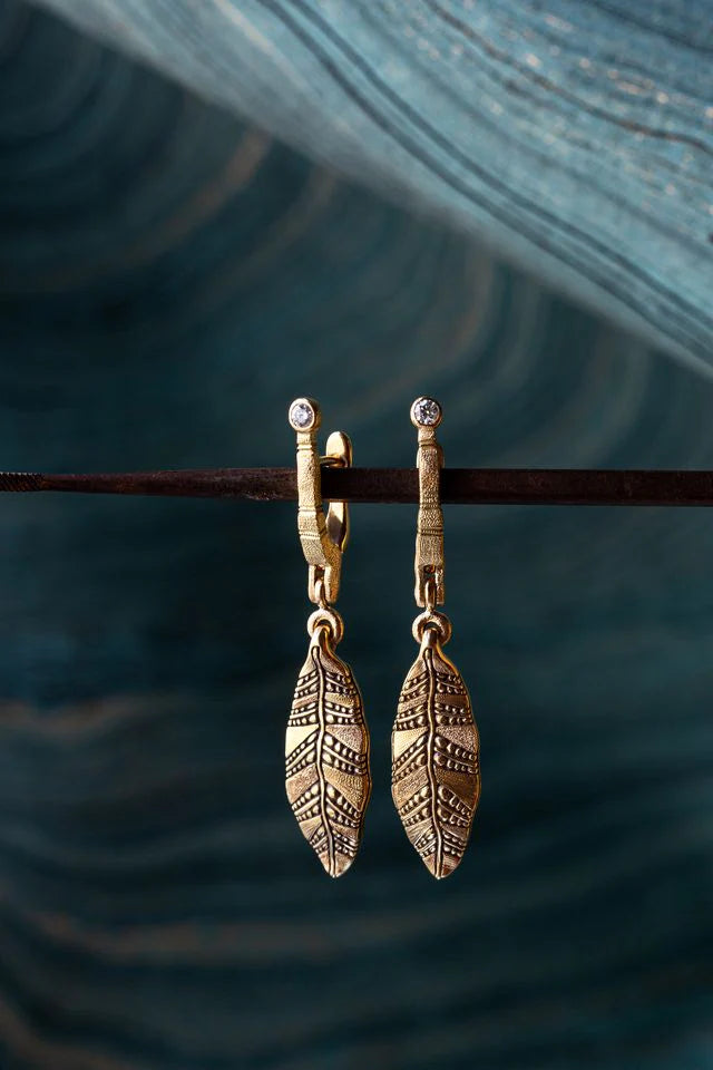18K yellow gold "Leaf 2" earrings with diamonds (.11ctw) E-275D