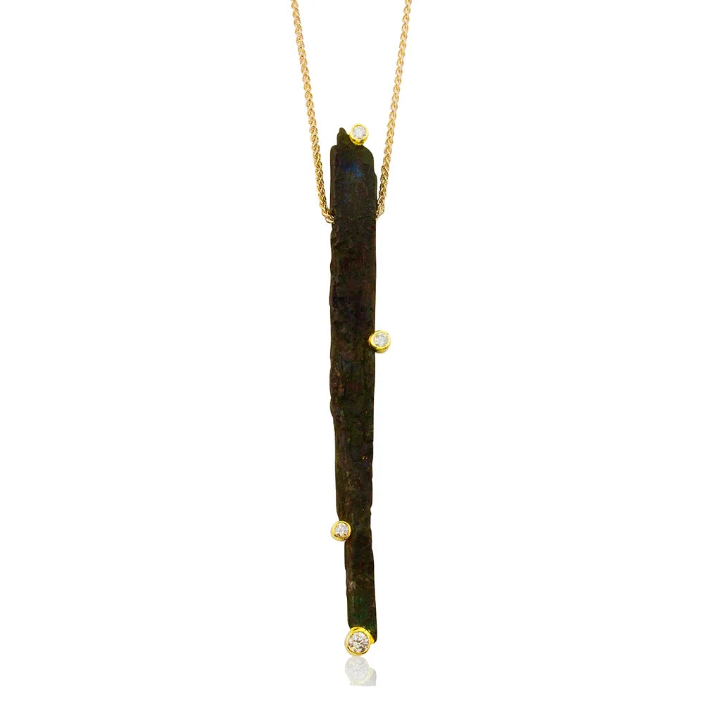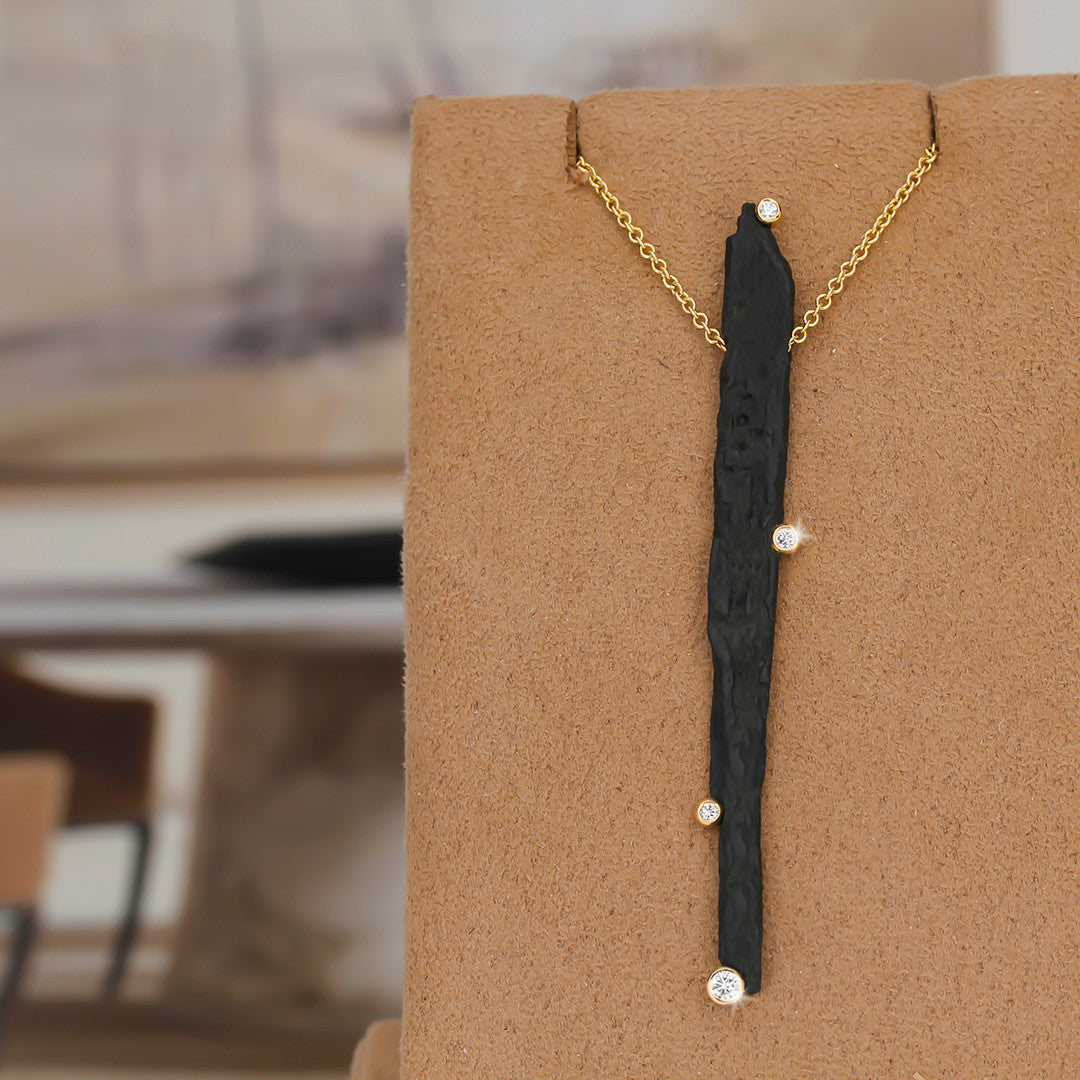 18K yellow gold and black cobalt chrome pendant with diamonds.