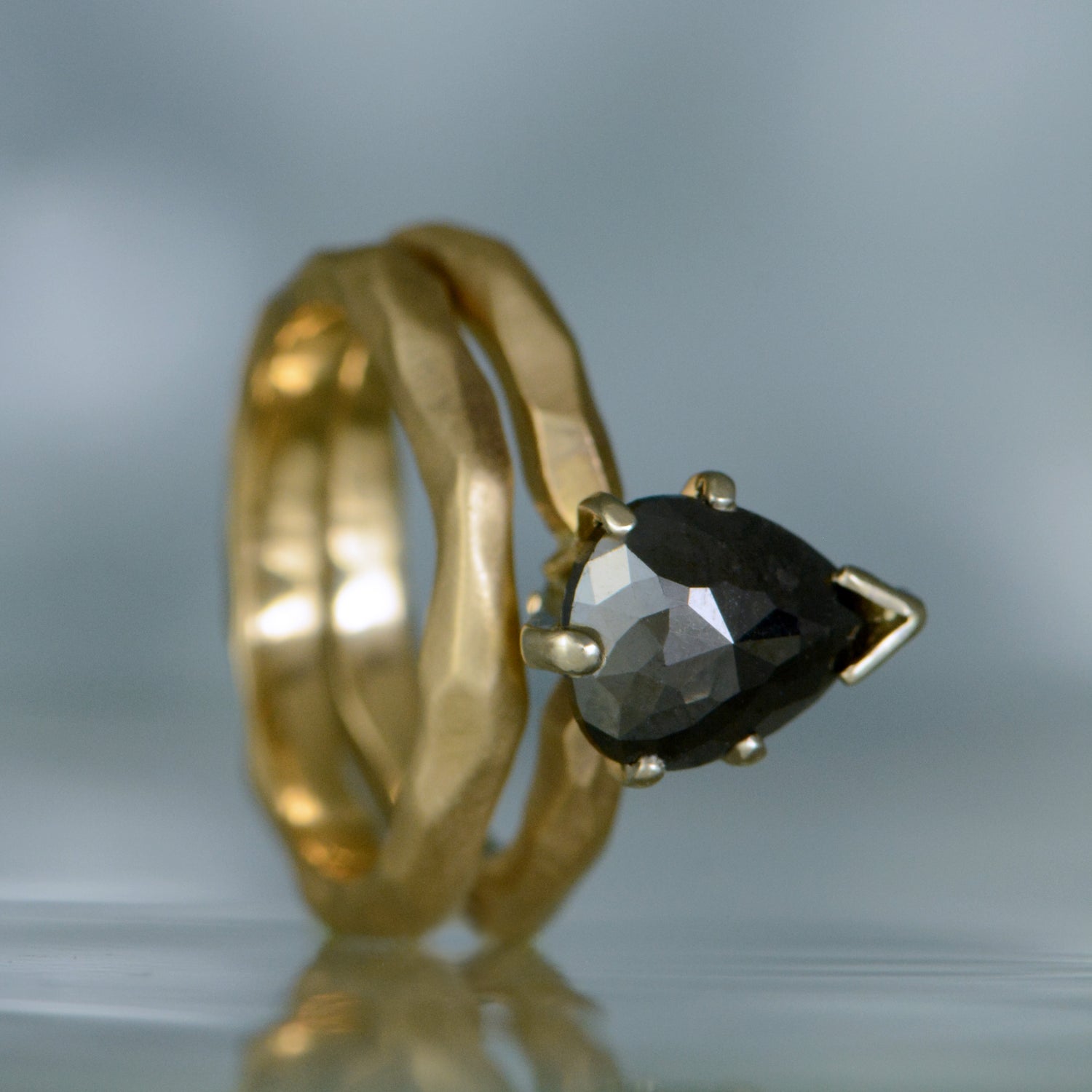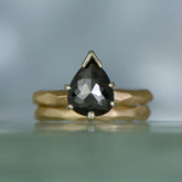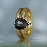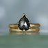 14K yellow gold "primitive stick" solitaire with one 1.60ct pear-shape black diamond. Finger size 5.5. (Head is 14K white gold)