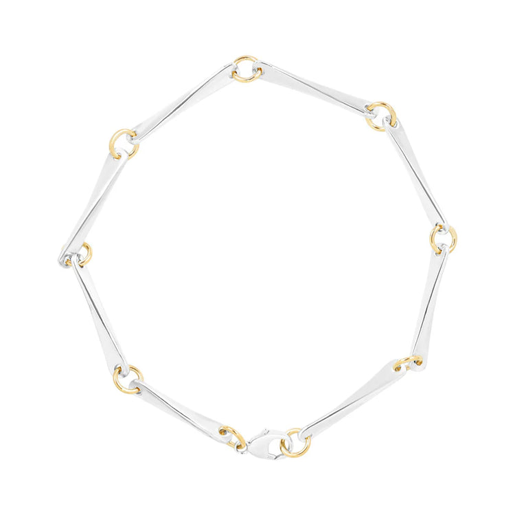 Hand hammered sterling silver bars linked with 14kt gold fill circles.