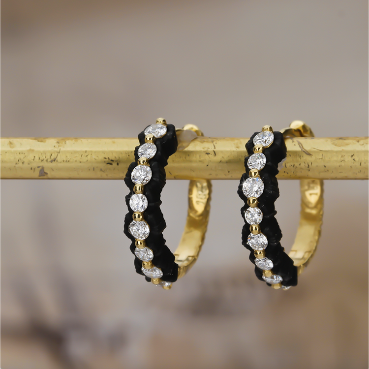 Scallop Round Hoop Earrings - 18k Yellow Gold, Oxidized Cobalt Chrome and White Diamonds (.40ct), 16.5mm