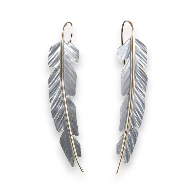 Sterling silver sheet hand hammered with a cross-peen hammer, gently echoed with 14kt gold fill french wire.