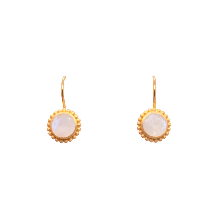 Karma Rainbow Moonstone wire drop earrings in 24K Gold Vermeil