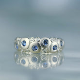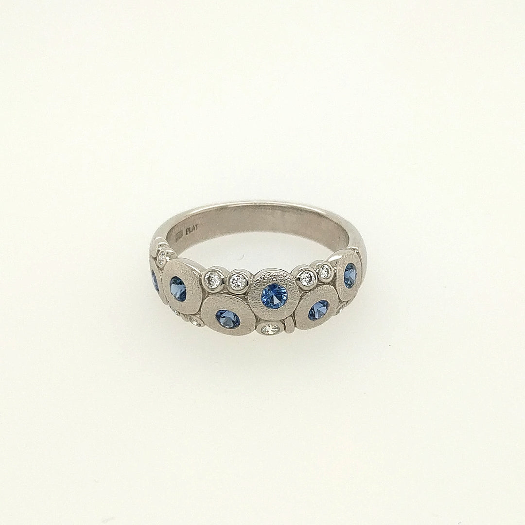 Platinum band with .50ctw sapphires and .12ctw diamonds. Finger size 6-3/4.