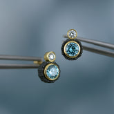 18K yellow gold and black cobalt chrome with 1.14ctw round blue zircons and (2) .05ct round diamonds.