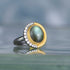 22K GOLD & OXIDIZED SILVER “LUNA” RING WITH OVAL CABOCHON LABRADORITE & DIAMONDS, 10X12mm lab, 0.15 ctw d.