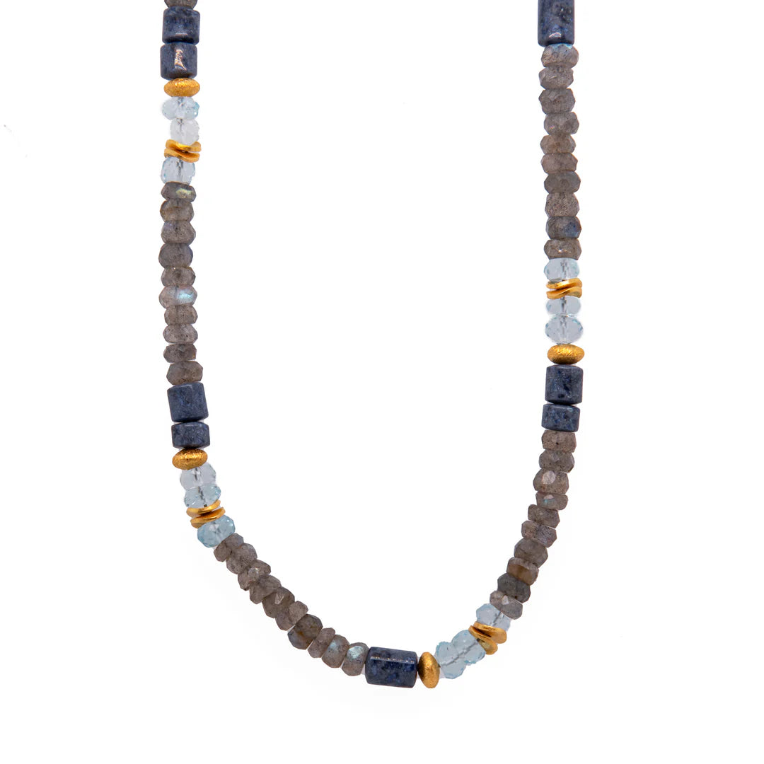 Polished Dumortierite, Sky Blue Topaz and Labradorite 5mm Necklace 24K Fair Trade Gold Vermeil
