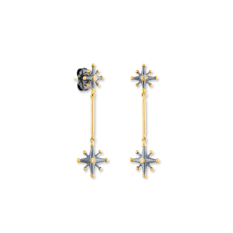22K GOLD & OXIDIZED STERLING SILVER STARBURST EARRINGS, DIAMONDS, 18k posts& backings, .08ct total weight