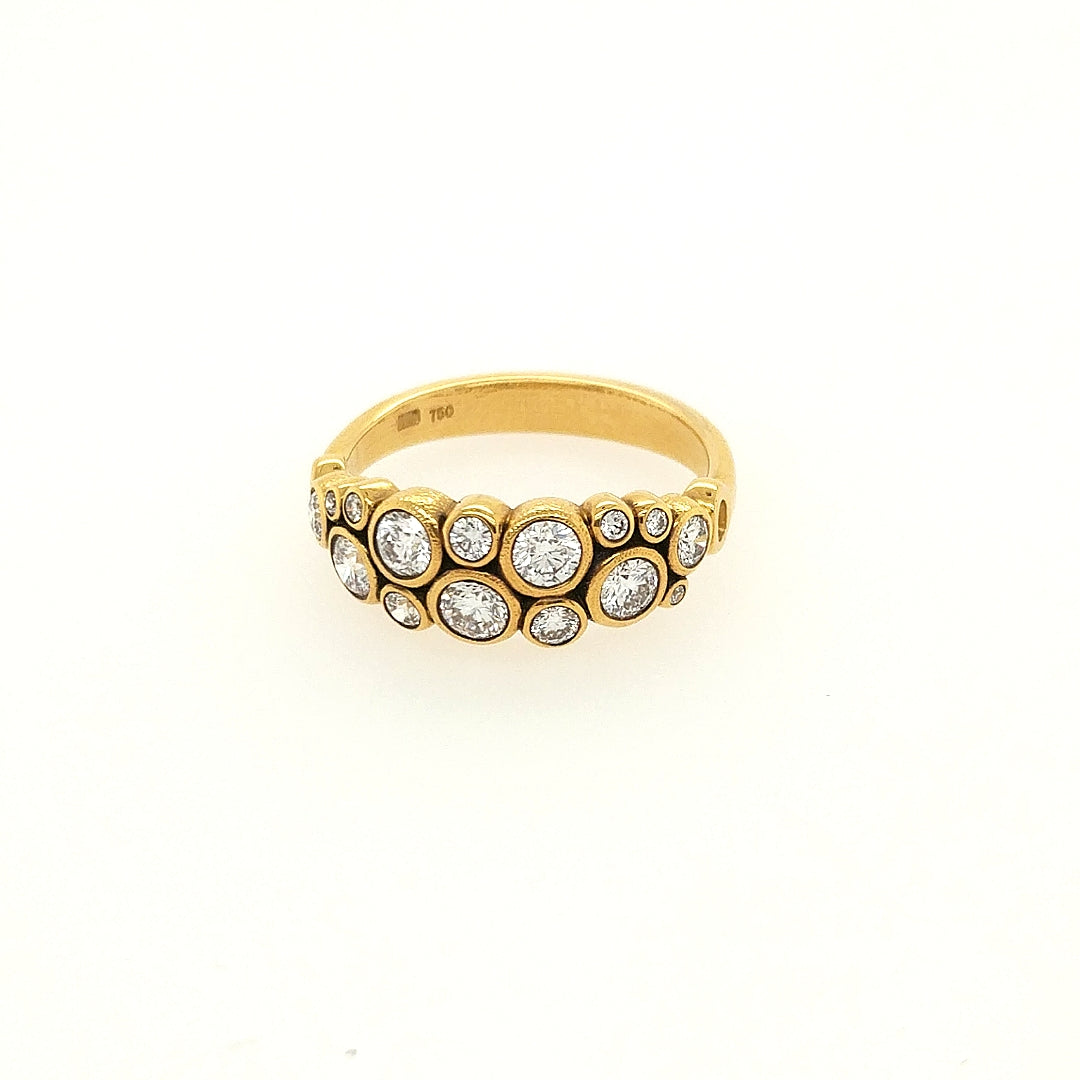 18K yellow gold ring with bezel-set diamonds (.95ctw). Finger size 6-3/4.