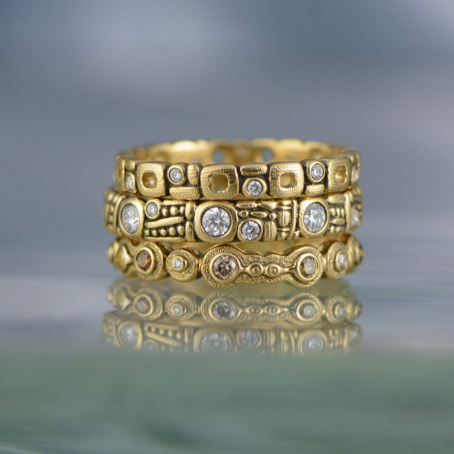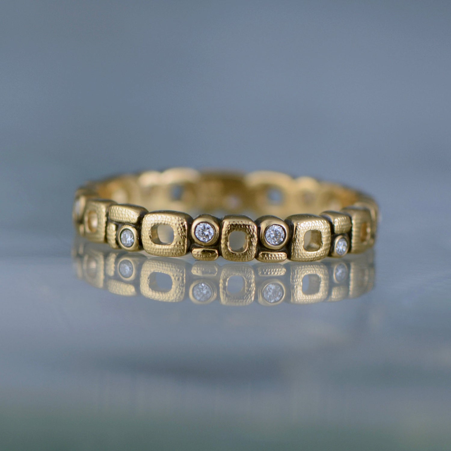 18K yellow gold 3mm ring with 11 round white diamonds (.14ct tw) R-119 Finger size 7