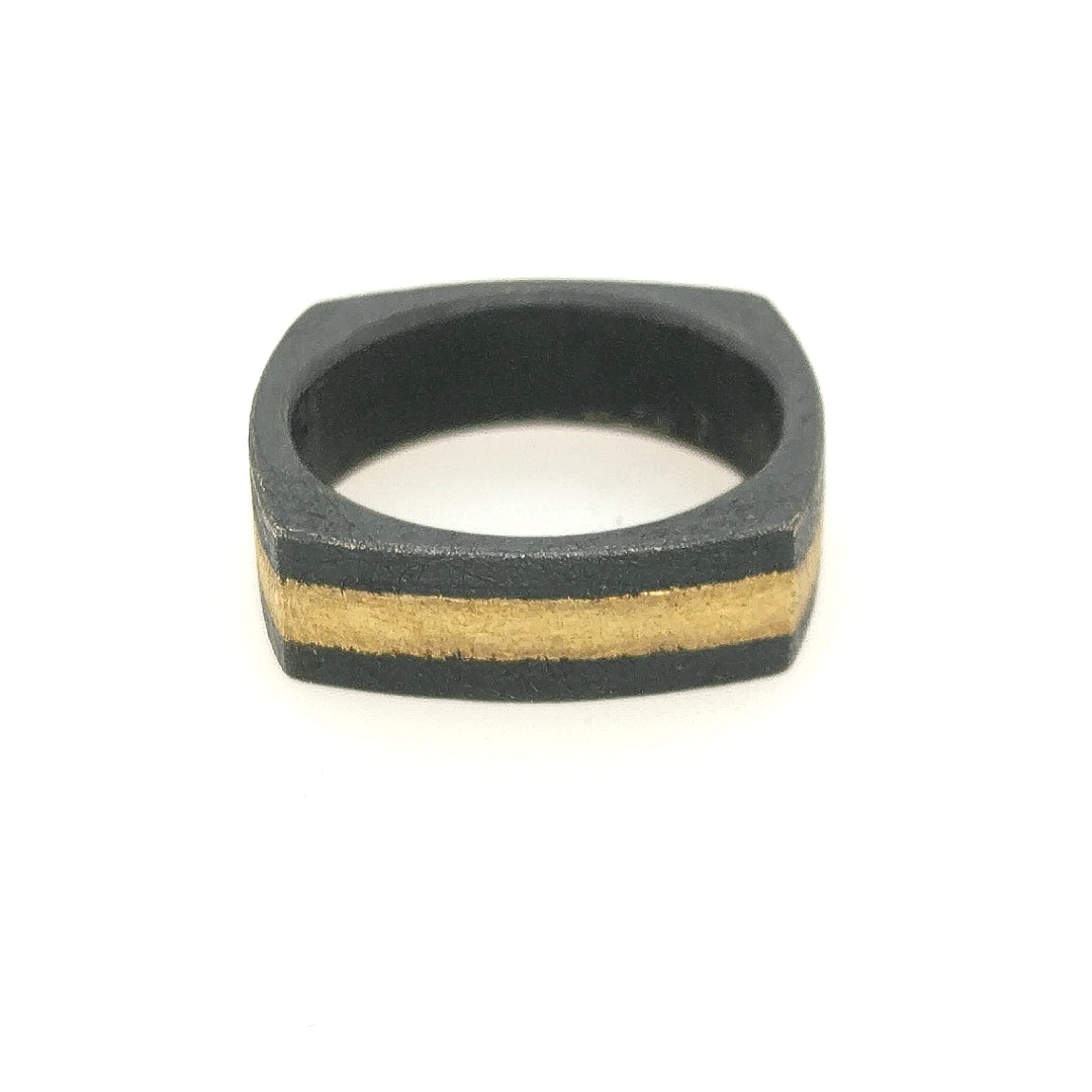 Oxidized sterling silver and 18K yellow gold band. Finger size 9-3/4.