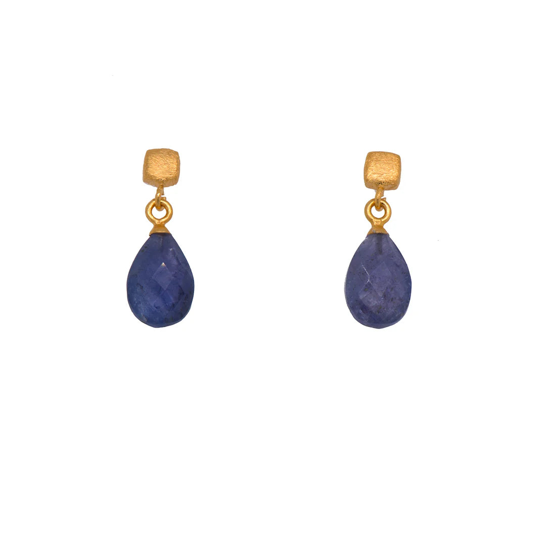 7x10mm Tanzanite drop on Cube Post Earring, 24K vermeil