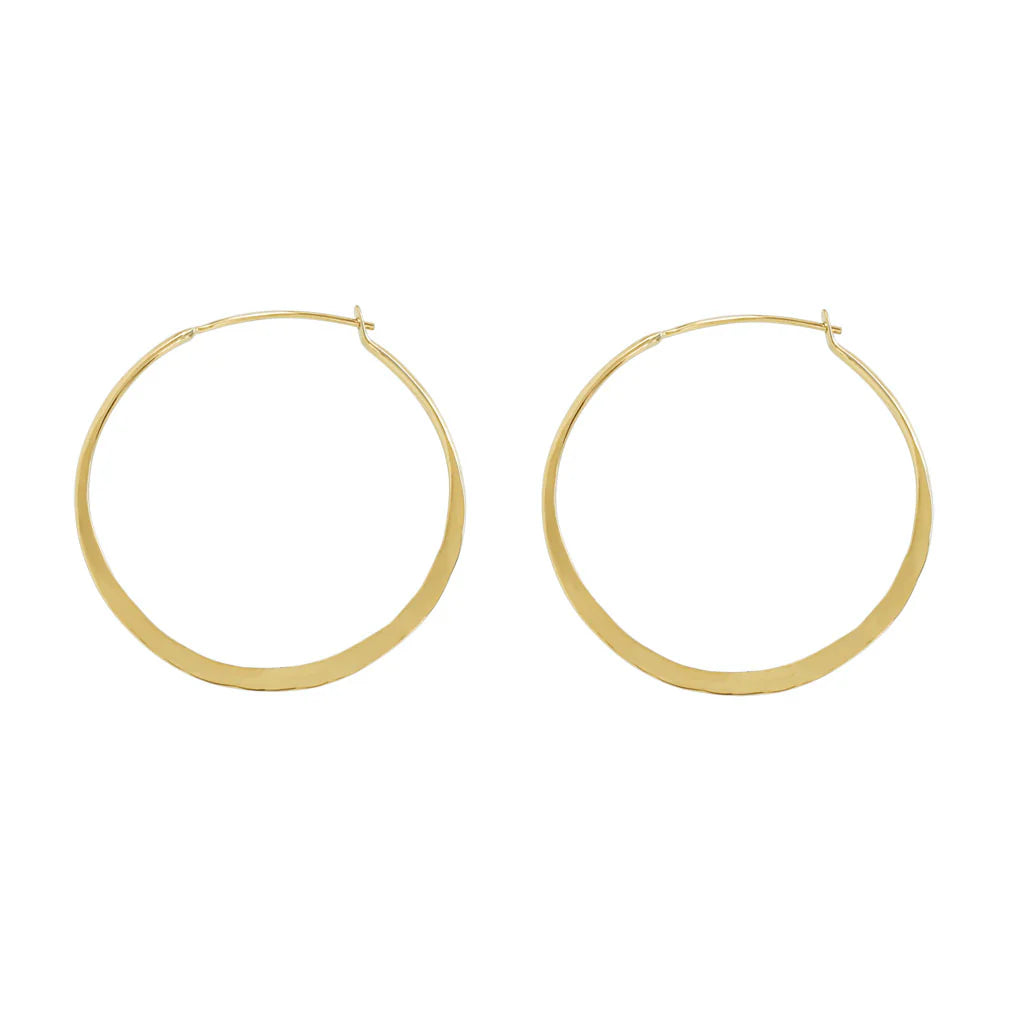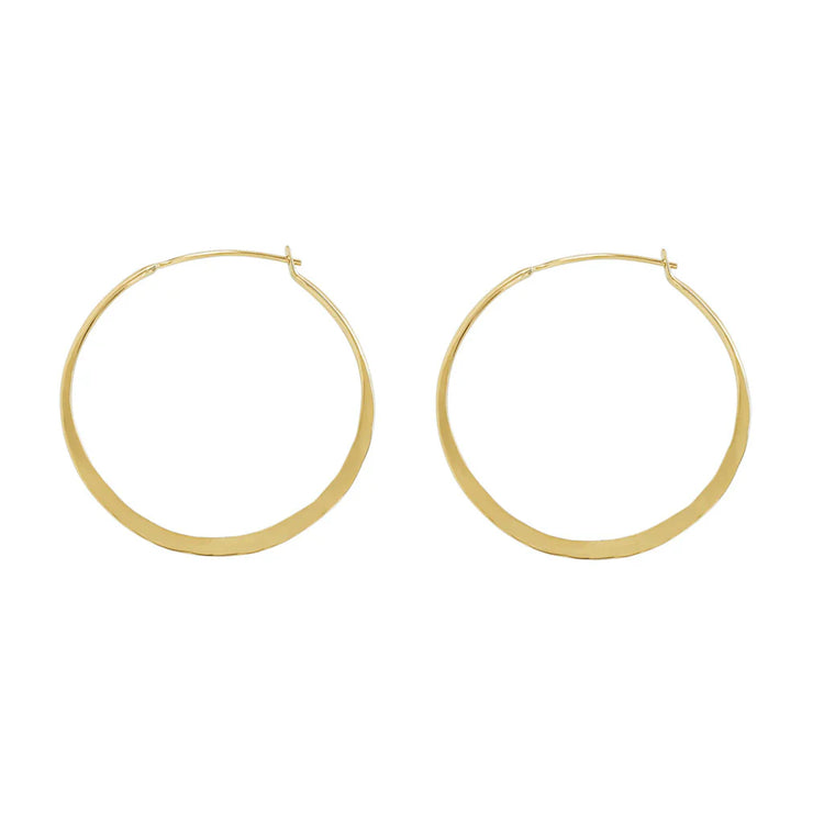 Hand hammered sterling silver and 14kt gold fill hoops. Available in three sizes; small, medium and large.