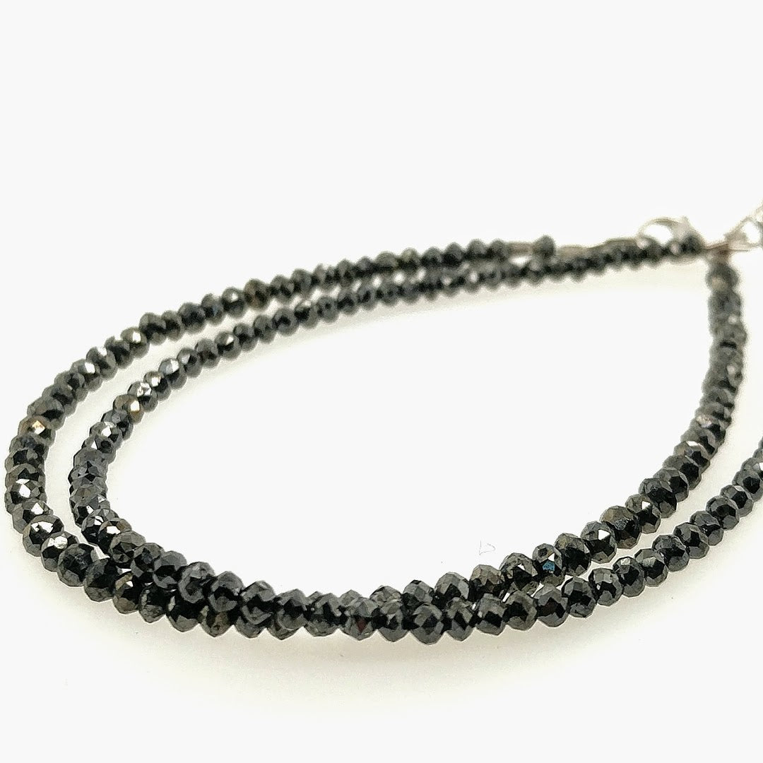 Faceted black diamond bead bracelet with 14K gold clasp.