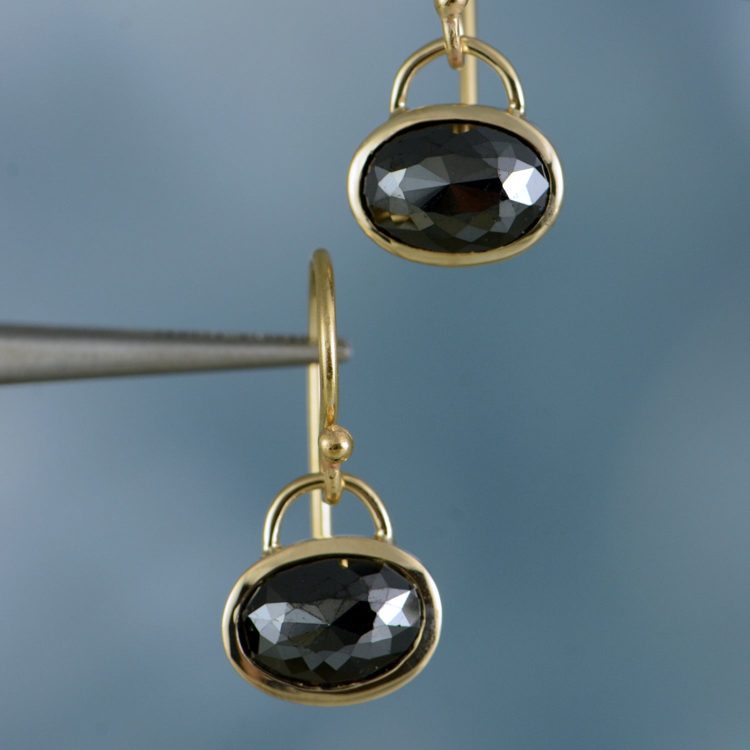 14K yellow gold earrings with 3.84ct total weight black diamonds