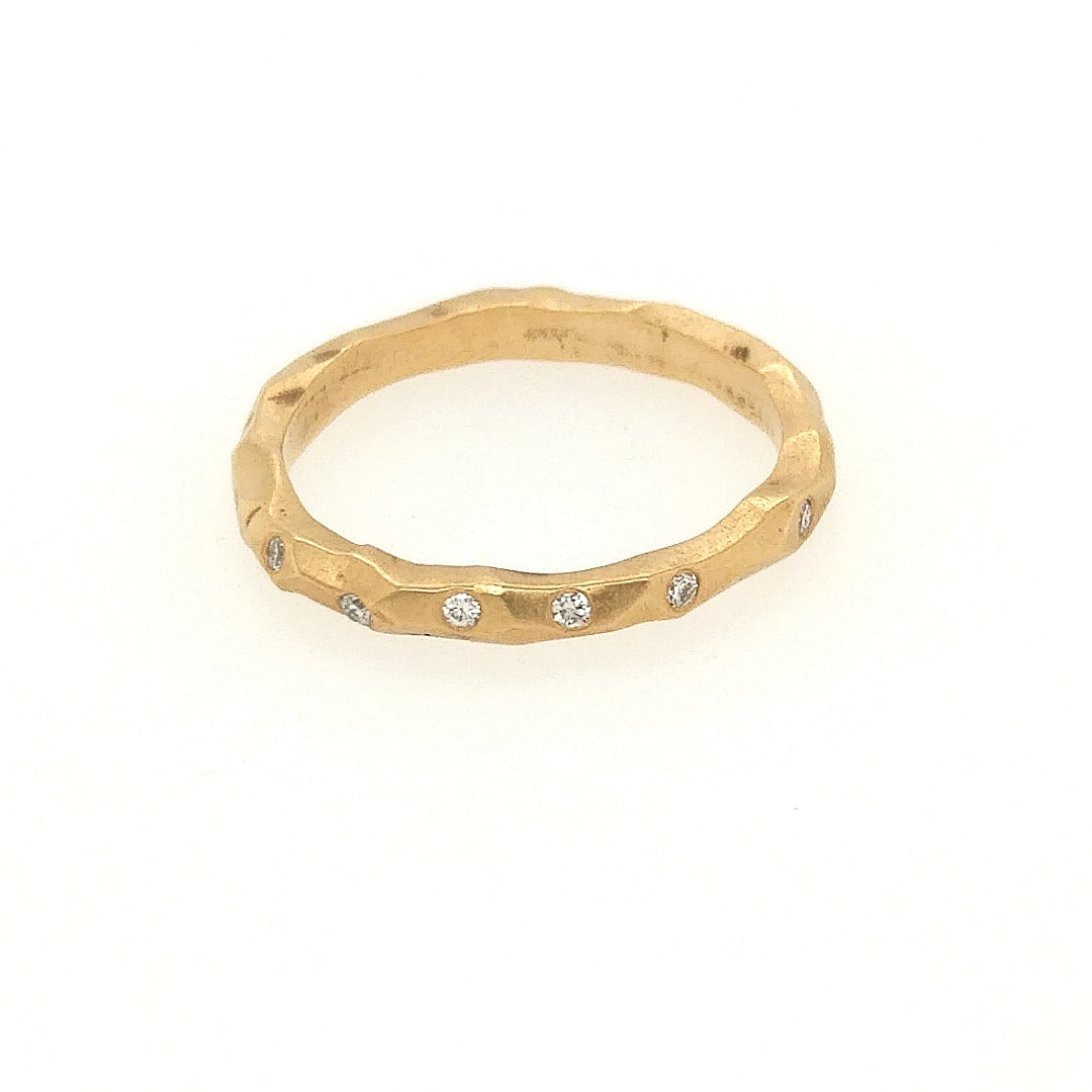 14K gold band with six (.01ct) flush-set diamonds. Great for stacking.