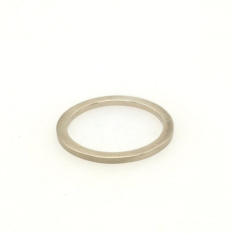 1mm 14K white gold flat band. Great for stacking. (Shown stacked with Retro Squares Ring)