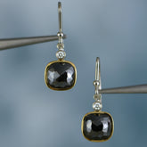 22K yellow and 14K white gold earrings with 4.93ct total weight black diamonds and (2) .03ct white diamonds.
