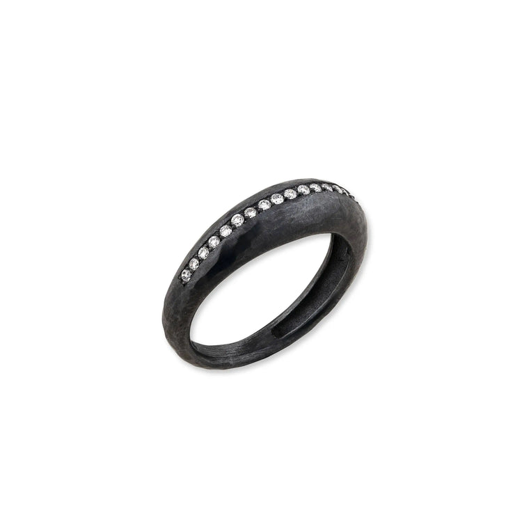 STERLING SILVER “BOOGIE LINE” HAMMERED RING, DIAMONDS (.19CT Total Weight)