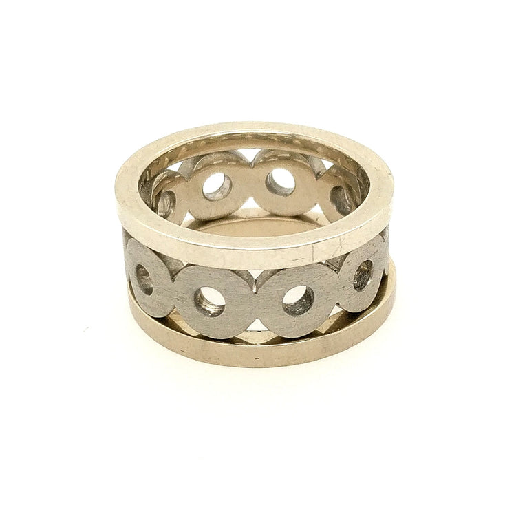 2mm 14K white gold flat band. Great for stacking. (Shown stacked with Retro Circles Ring)