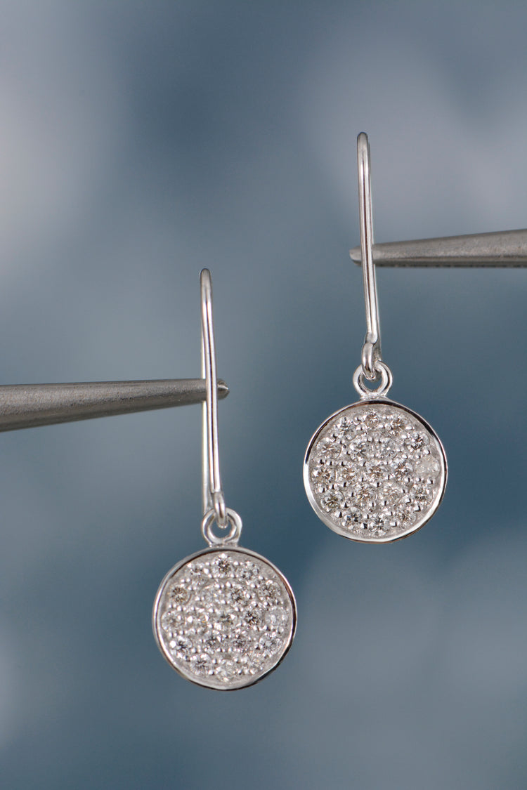 14K white gold pave diamond drop earrings. .40ct total weight.