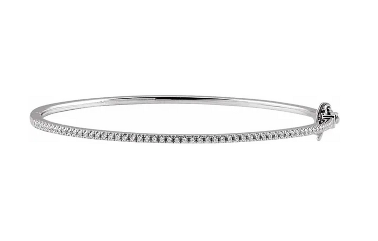 14K white gold hinged bangle with 1.3mm natural diamonds (.50ct total weight)